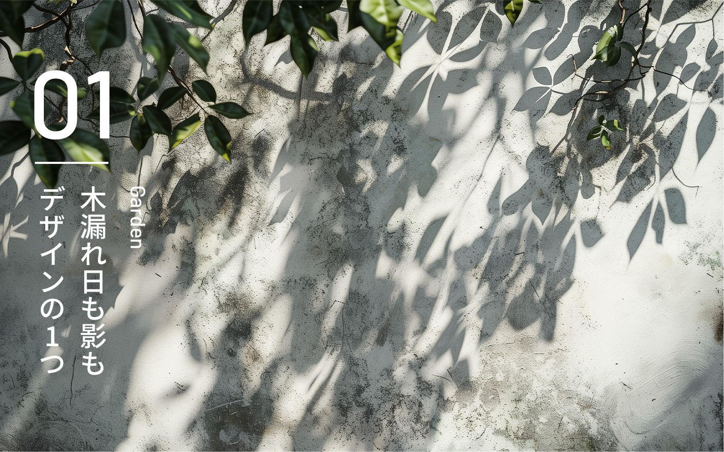 植栽は、日中には木漏れ日の美しい光と影を、夜にはライトアップによって幻想的な影を楽しむことができます。