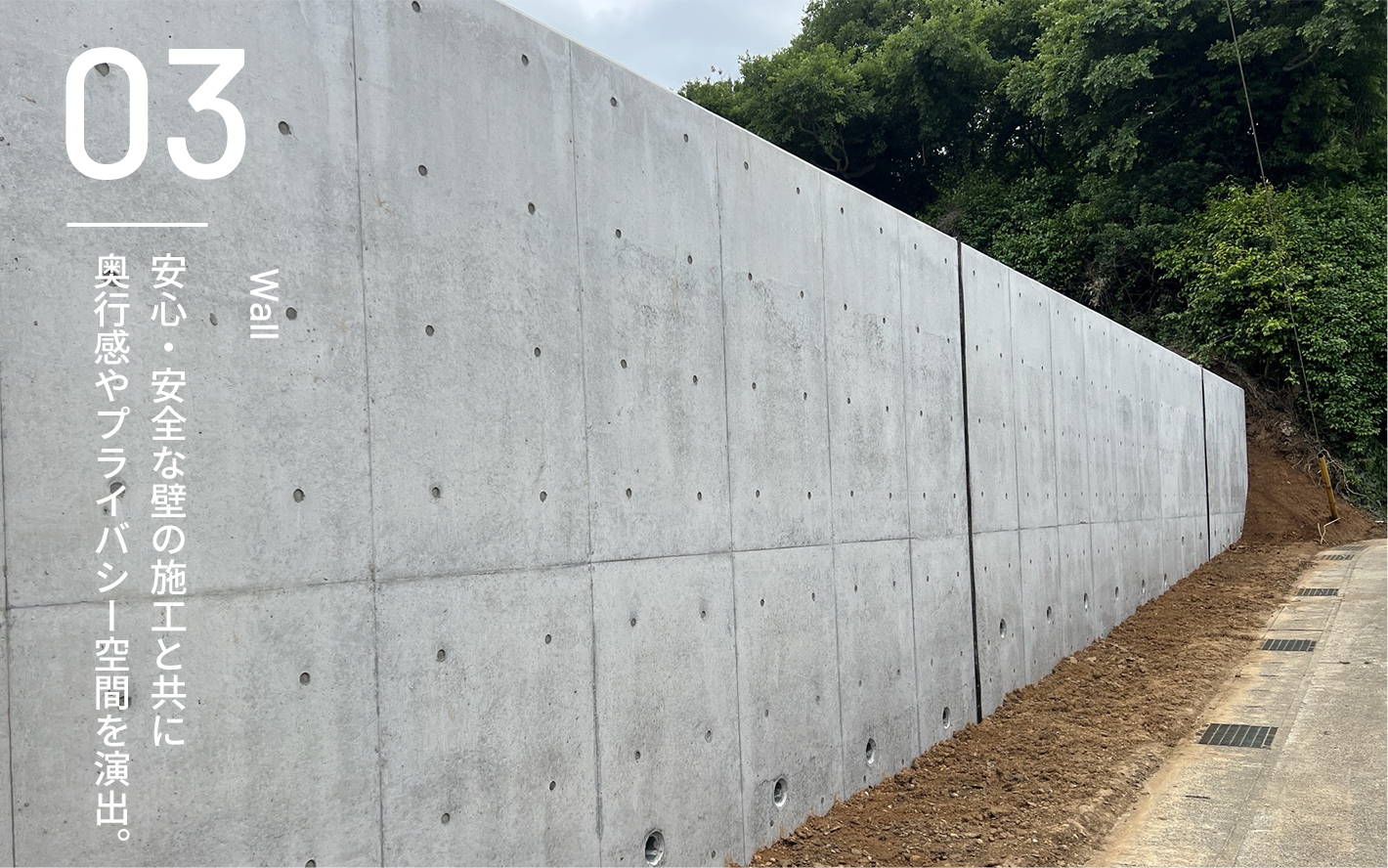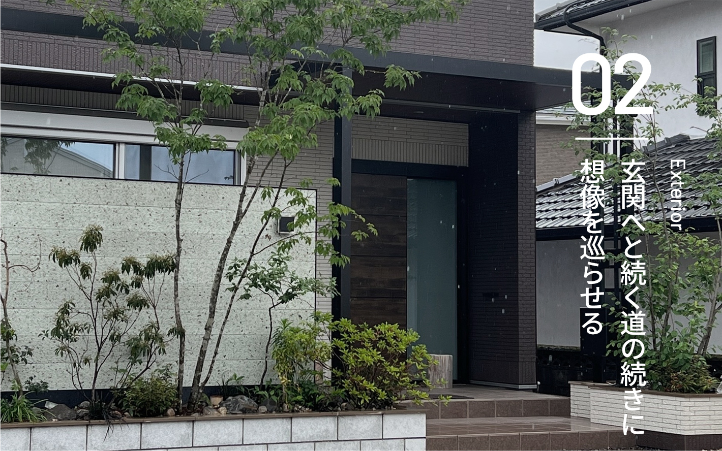 いくつかの壁をアプローチに巧みに配置することで、プライベート空間を効果的に隔離し、防犯性を高めることができます。